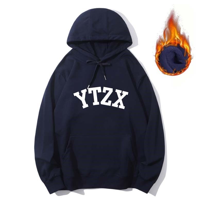 YHAY宝蓝彩色连帽加绒加厚休闲卫衣秋冬新款衣字母贴布宽松打底衫