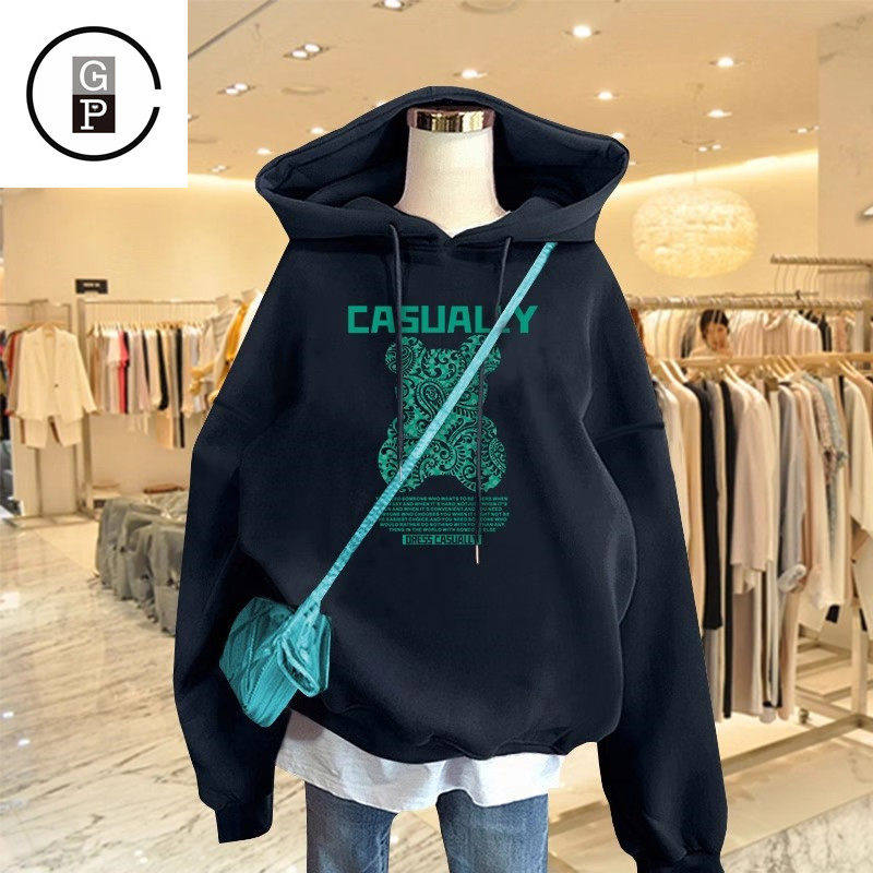 日本GP小熊宝蓝色连帽春秋薄款卫衣女冬新款加绒加厚外套上衣爆款