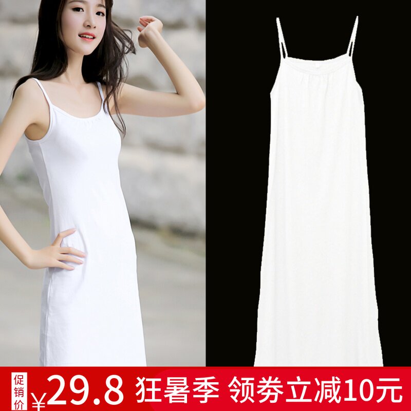 纯棉中长款吊带背心打底裙防走光大码内搭防透内衬裙女白色连衣裙