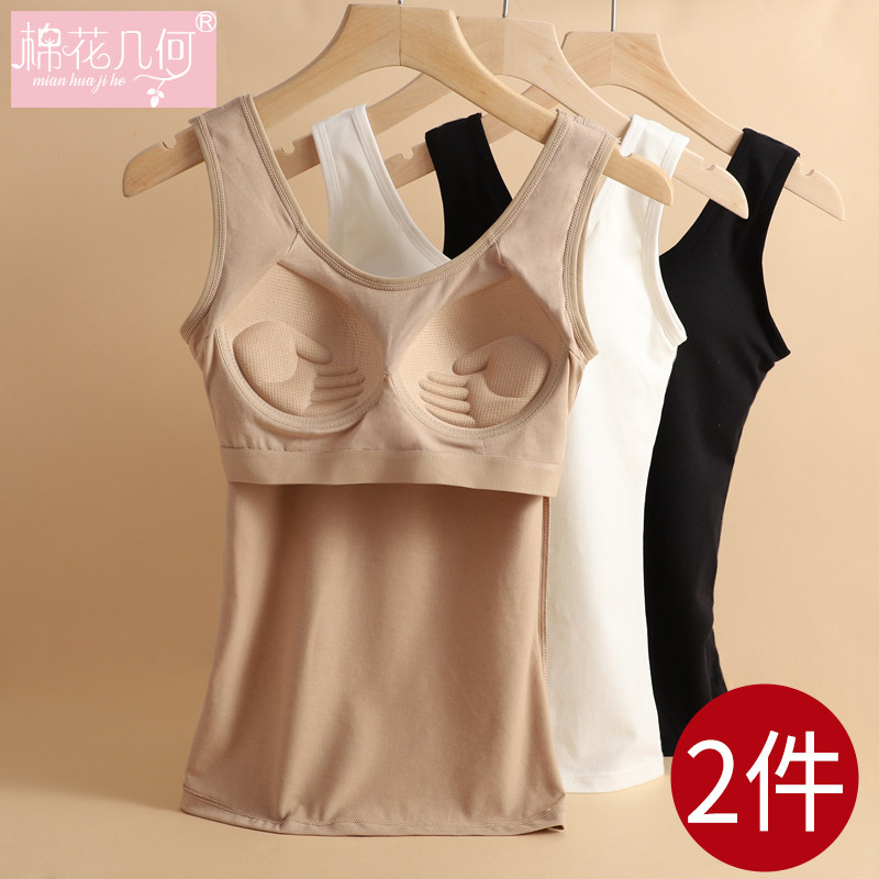 吊带背心女纯棉薄款带胸垫一体文胸修身春夏打底内搭长款美背内衣
