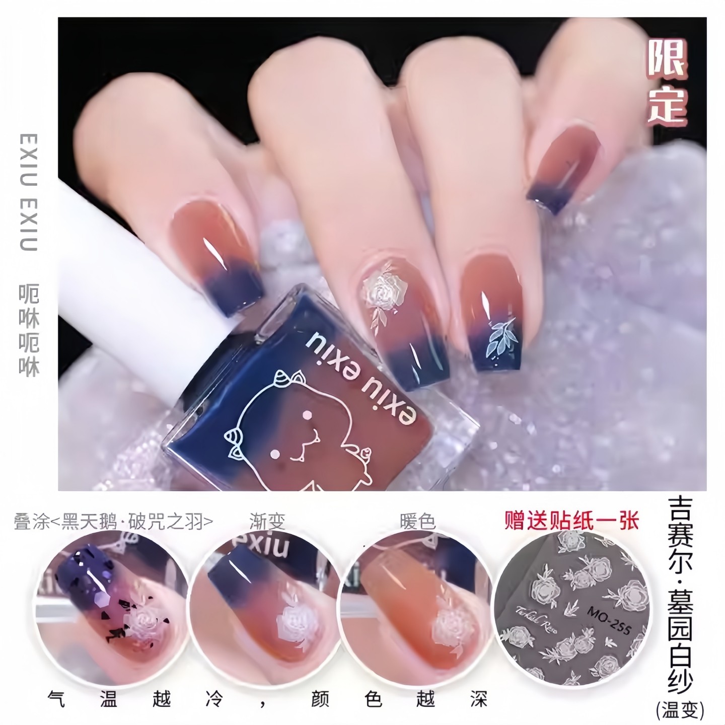 exiu呃咻呃咻油性免烤温变指甲油万圣节序章镜中轮回魅影血泪宣告