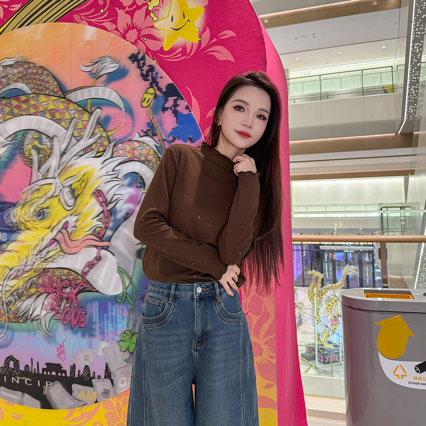 【恩佳专享】【百搭星空款】洒银工艺~双面磨毛木耳边打底衫B322