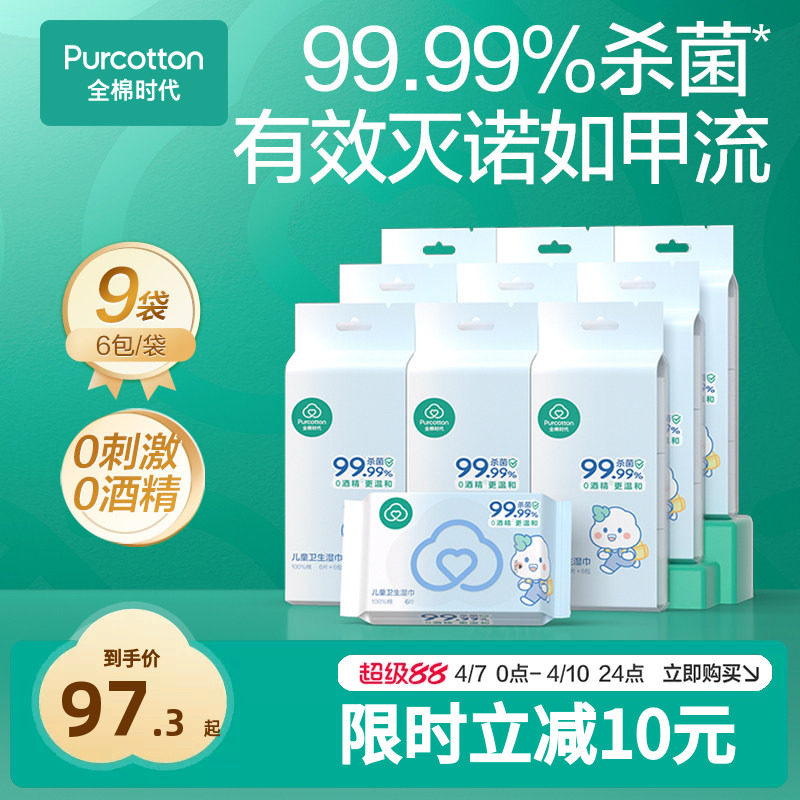 全棉时代儿童卫生湿巾小包便携随身装湿纸巾杀菌消毒湿巾8抽*10包