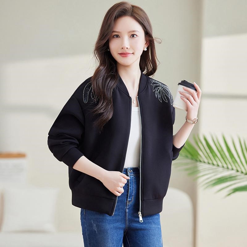 九月陌墨时尚钉珠太空棉棒球服女春秋2025新款宽松百搭大码短外套