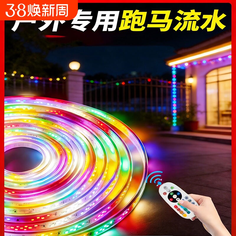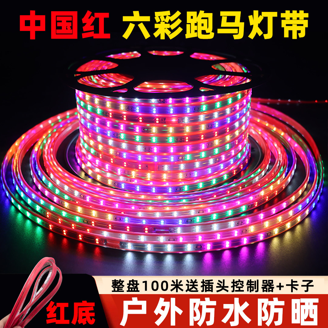 跑马灯流水彩灯带户外防水氛围七彩变色led灯条2026年新款中国红