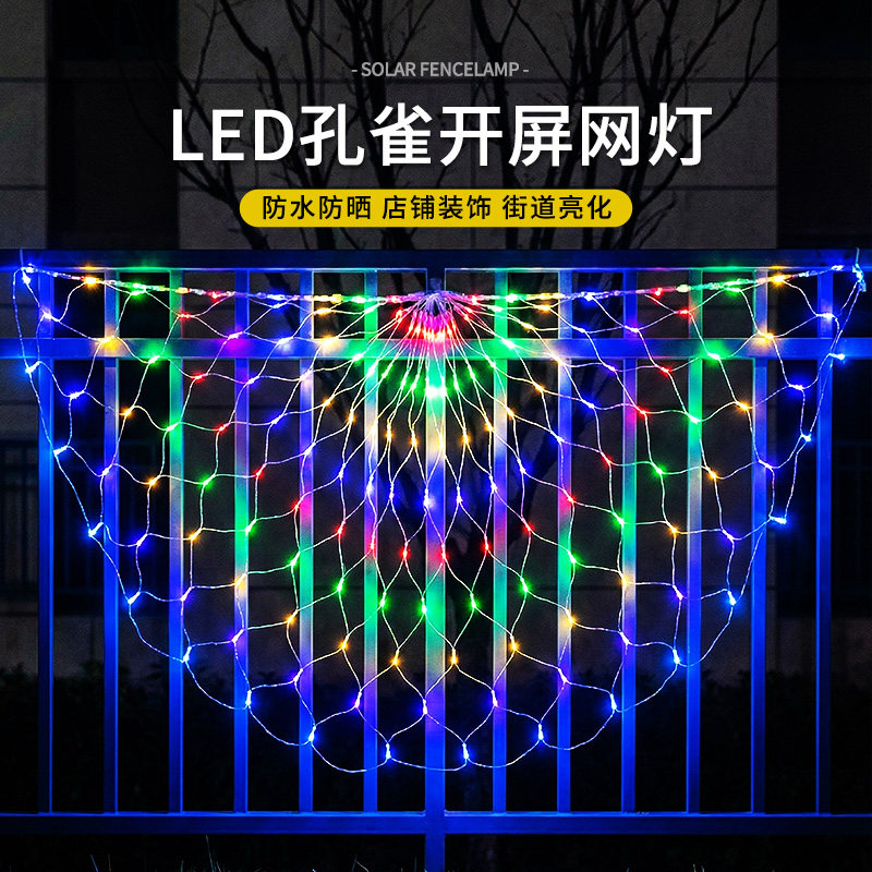 孔雀开屏网灯户外灯串彩灯带氛围灯防水装饰灯庭院布置流水瀑布灯