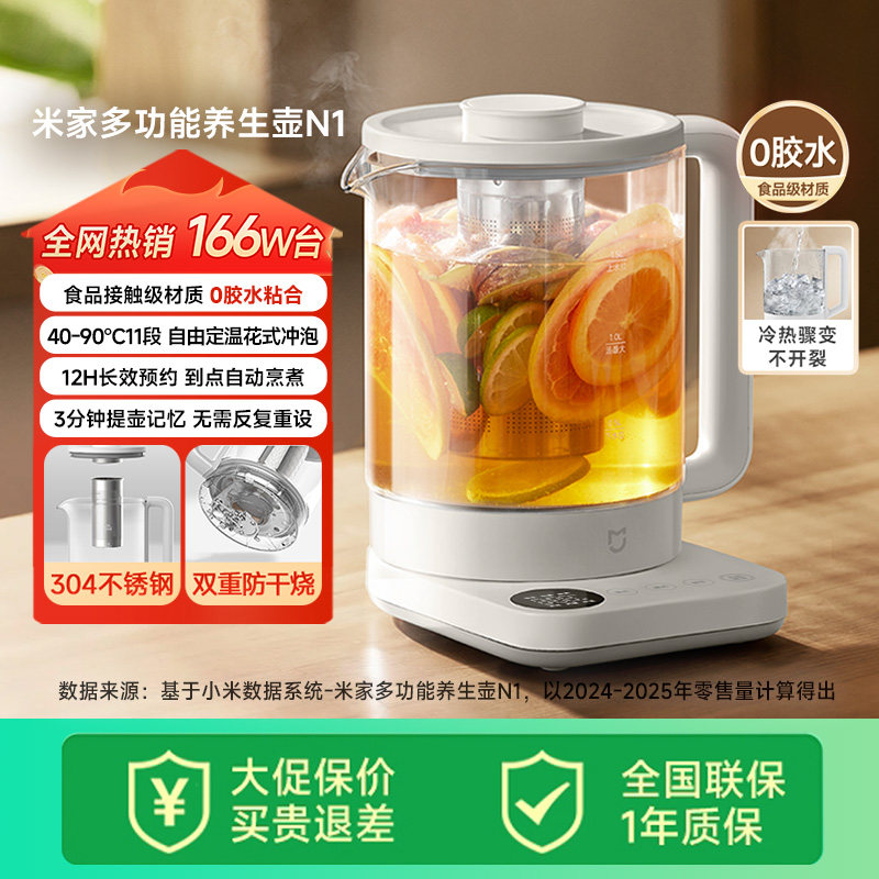 美的养生壶2L大容量办公室煮茶壶家用多功能煮茶器烧水壶2026新款