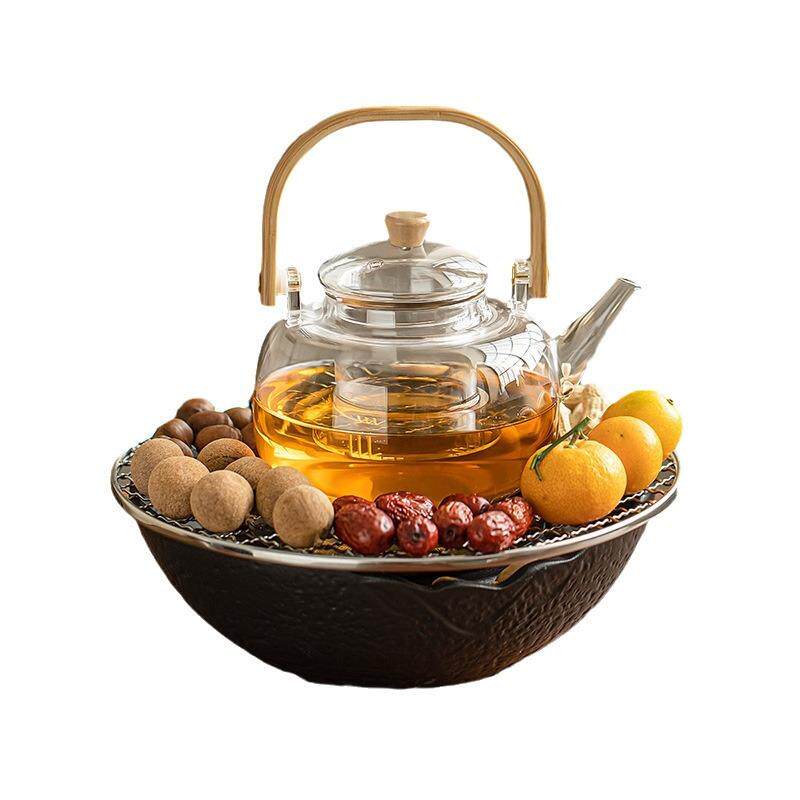 围炉煮茶家用室内电陶炉煮茶器具全套烤火炉煮茶茶具套装玻璃茶壶