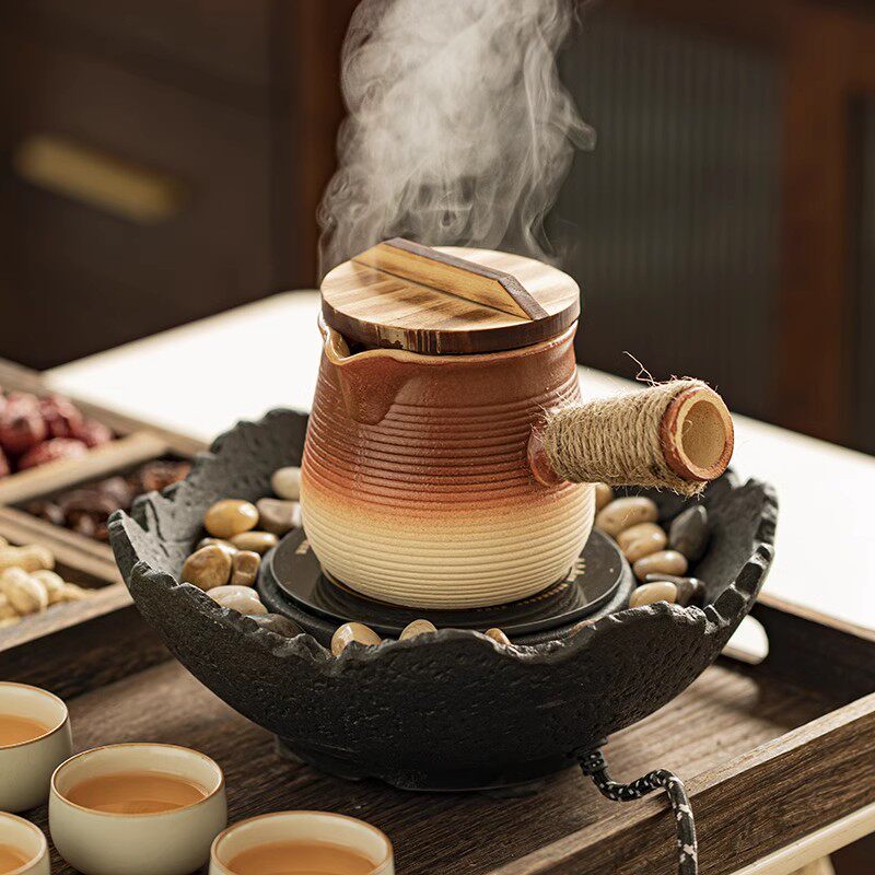 电炉子煮茶罐罐树桩侧把茶罐冲茶器家用煮茶炉咖啡炉煮茶茶具全套