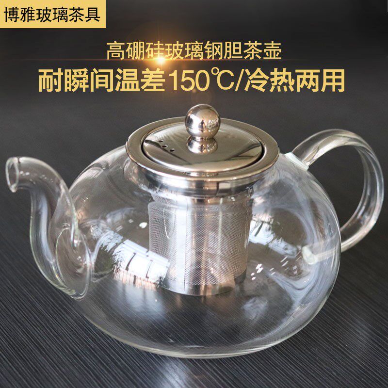 加厚玻璃茶壶大号新款泡茶壶耐热不锈钢过滤煮茶壶透明花茶壶套装
