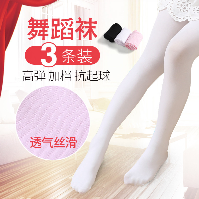 儿童连裤袜春秋中厚女童打底裤夏季薄款白色丝袜练功专用舞蹈袜子