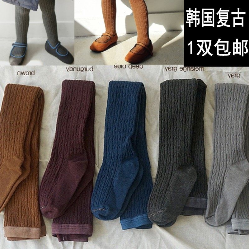 韩国儿童连裤袜春秋中厚薄款纯棉女宝宝复古麻花修身打底裤春装夏