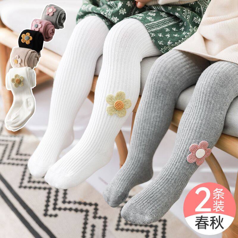 女婴儿连裤袜春秋中厚宝宝连体袜可开档01-3-5岁儿童薄棉款打底裤