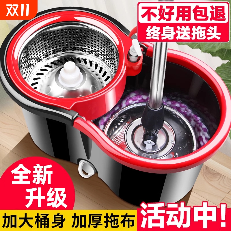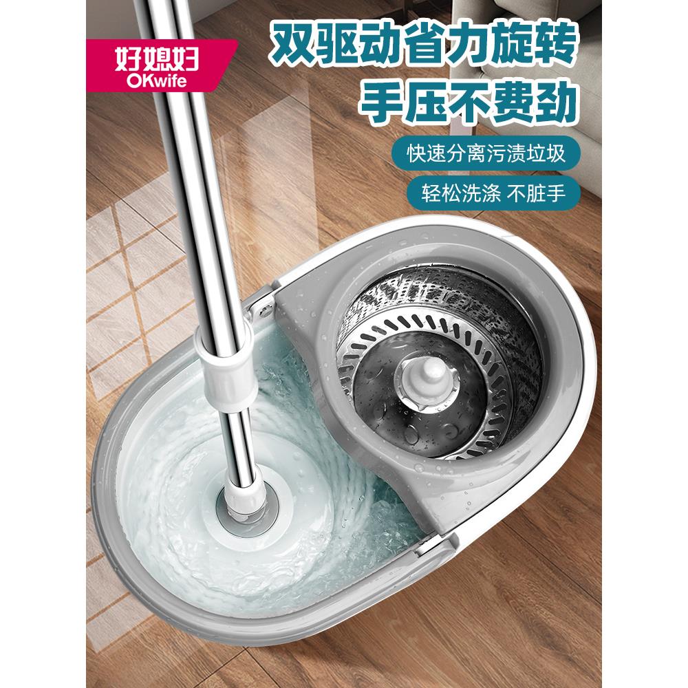好媳妇带桶旋转拖把 家用懒人免手洗甩水拖把旋转桶脱水清洁拖把