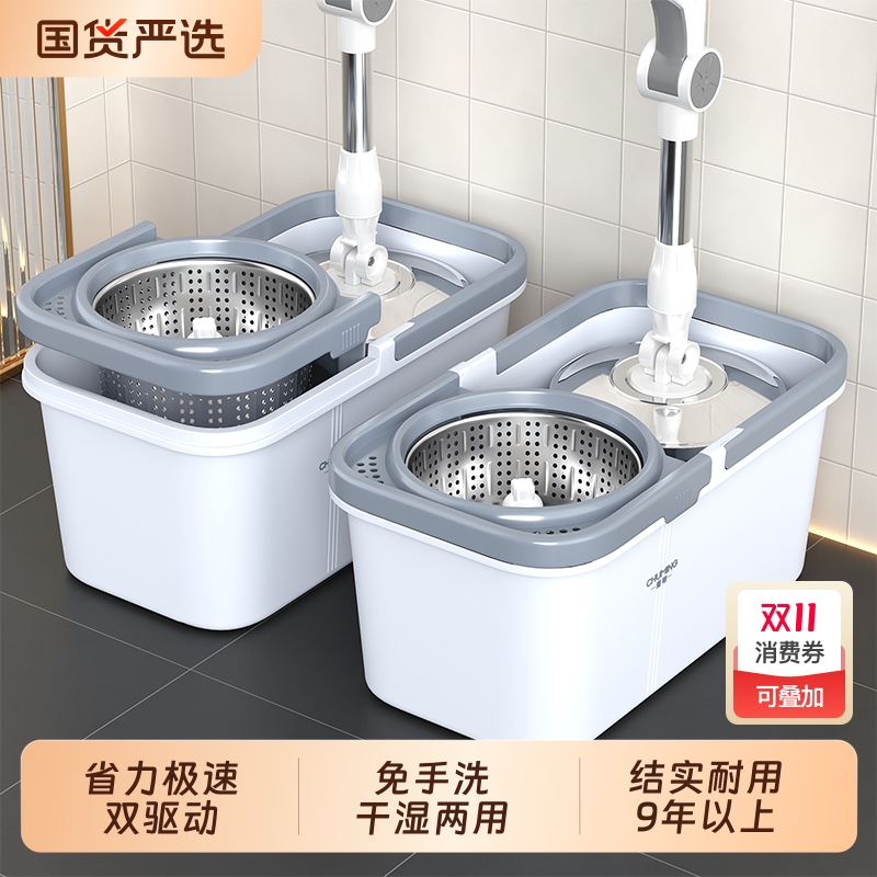 美丽雅绿行星双驱动手压旋转拖把懒人家用免手洗自动甩水地拖带桶