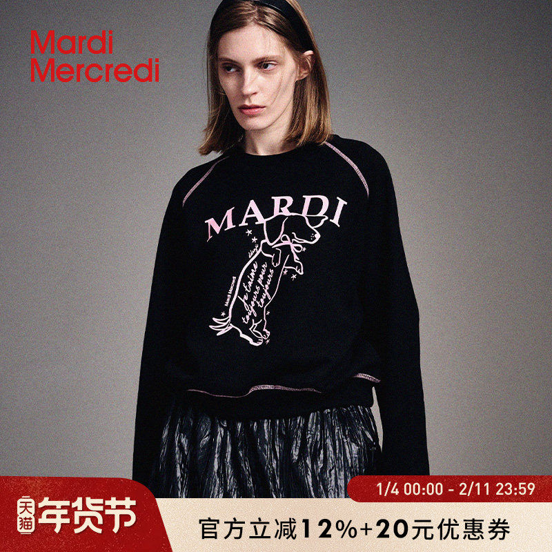 MardiMercredi摇尾珍珠小狗插肩薄卫衣小个子短款腊肠狗上衣女