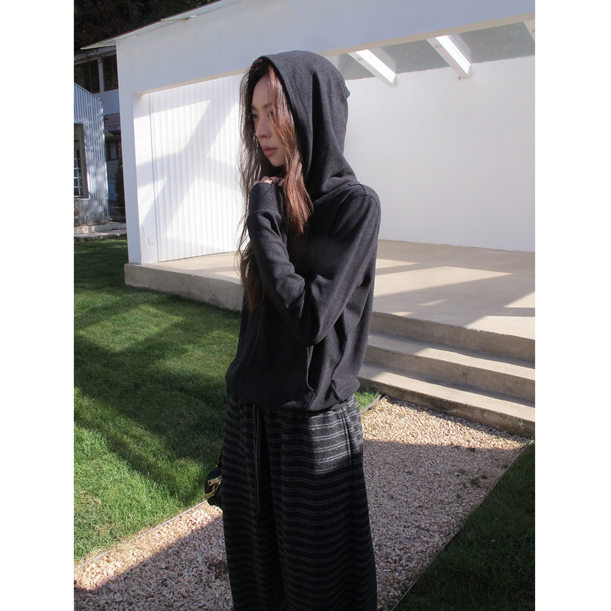 - 条纹连帽卫衣 女