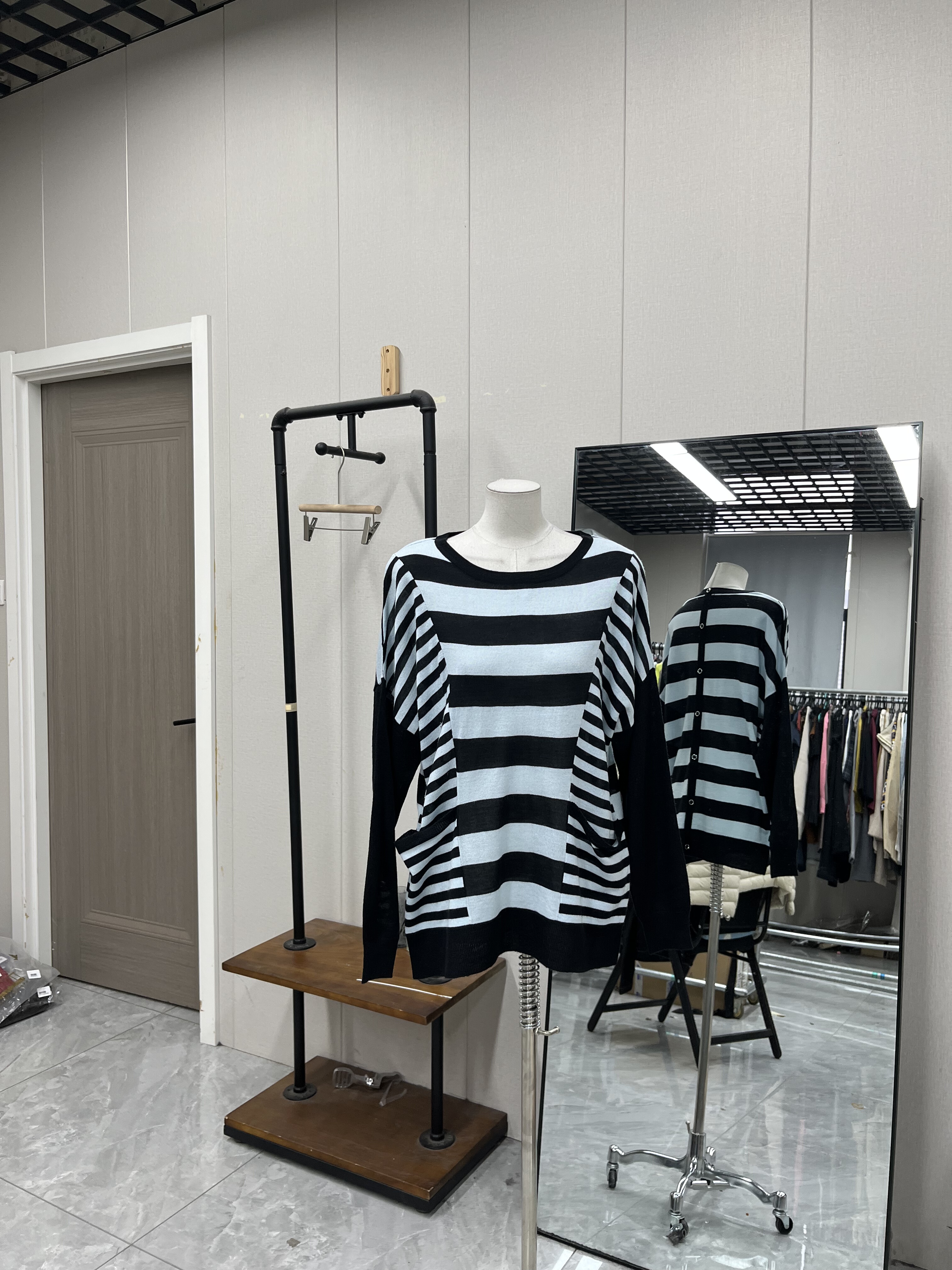 日单品牌秋冬新款休闲宽松大版翻领系扣蝙蝠长袖条纹厚衬衫31461
