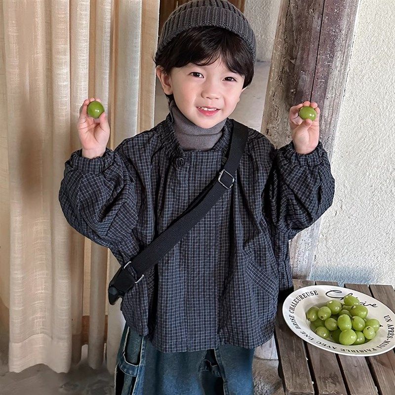 暮晨家新款春装2025男童格子蝙蝠袖外套中小童洋气宽松拉链衫夹克