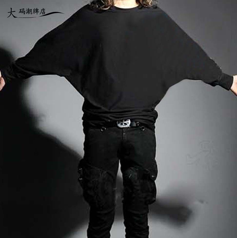 宽松大码套头针织衫毛衣个性宽松蝙蝠袖中长款潮男夜店舞台男毛衫