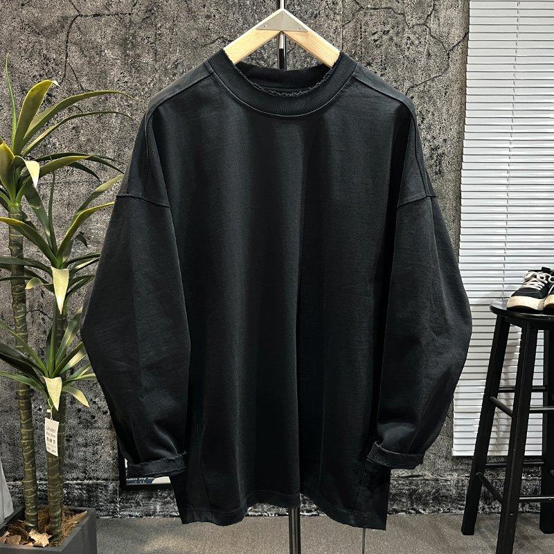 代购420G重磅纯棉阔版蝙蝠衫男慵懒风设计感扩版宽松肥大长袖T恤