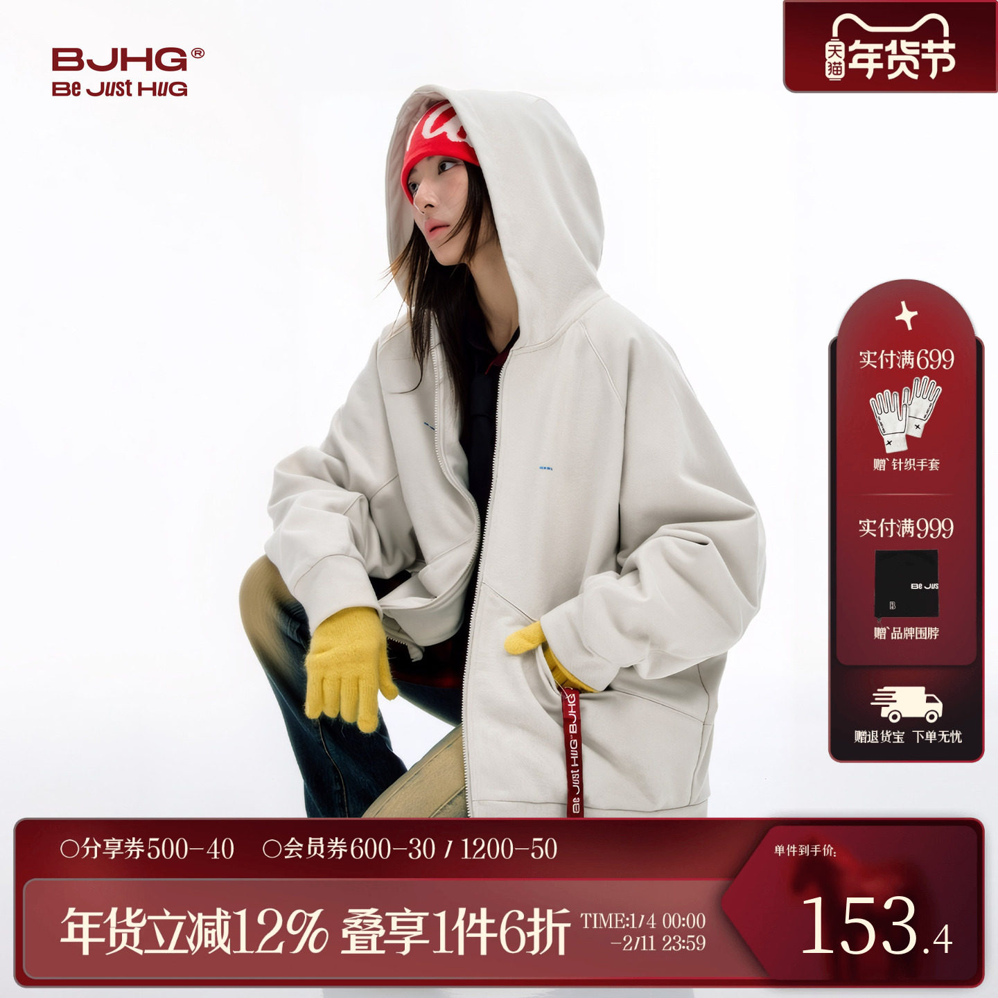 BJHG不计后果美式卫衣男款冬季暖皮针织开衫宽松蝙蝠袖连帽外套女