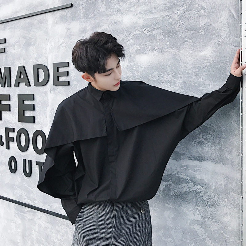 春夏新品男士披肩修饰宽松黑色街舞衬衫蝙蝠式拉风衬衣方书剑同款