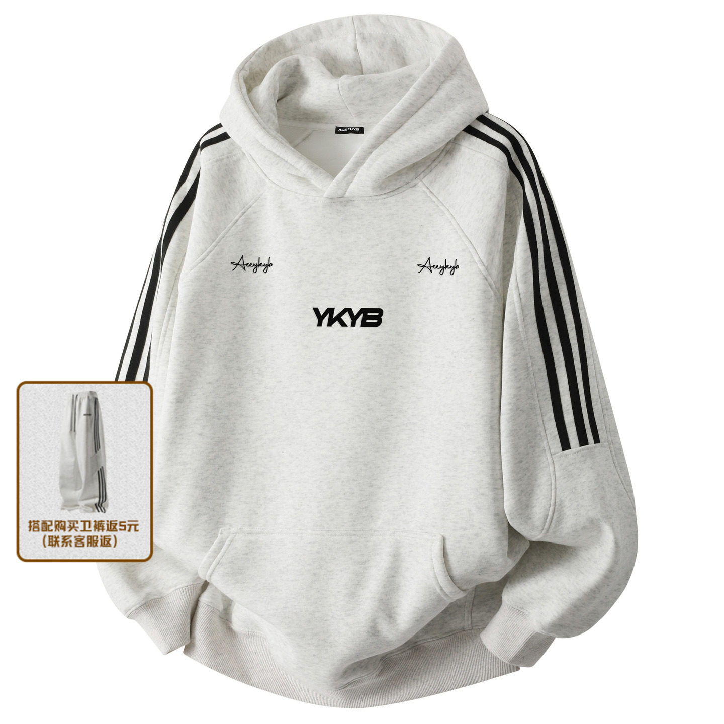 YKYB黄子韬 潮流卫衣美式复古侧边条纹宽松休闲情侣加绒帽衫秋冬