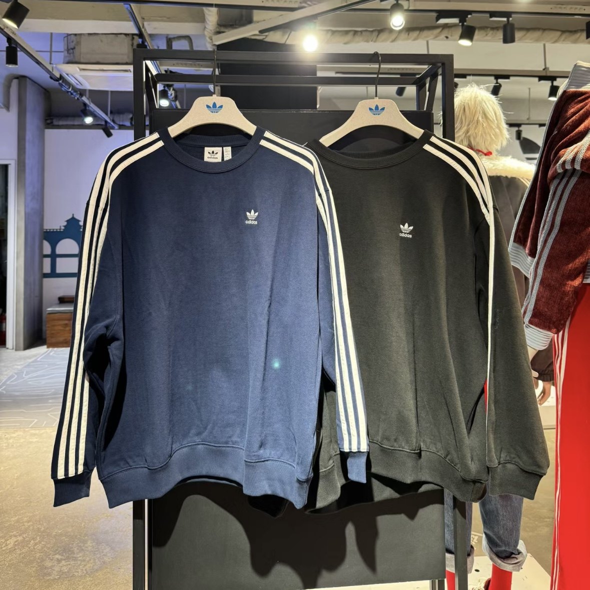 Adidas三叶草 男女运动休闲潮流经典条纹宽松卫衣 JN9786 JD0892