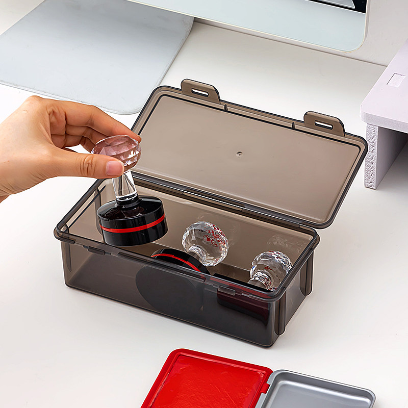 印章盒透明法人财务收纳盒盒子发票塑料便携式公章箱带印泥长方形装章盒的多功能法人印鉴透明大小号