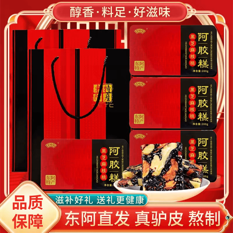 礼盒阿胶糕200g铁盒正宗东阿即食红枣枸杞黑芝麻核桃固元糕膏
