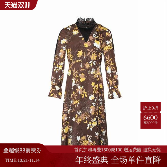 MOUSSY 冬季新品意式度假风蔷薇印花雪纺连衣裙028ISX33-1781