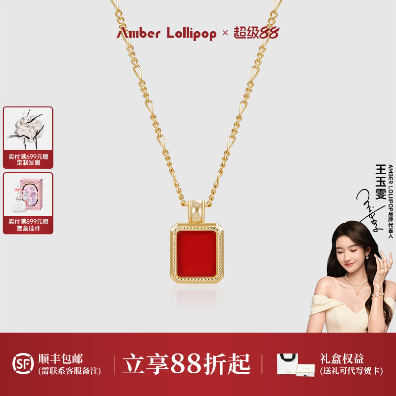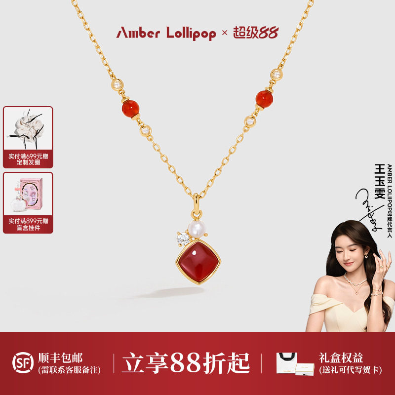 AmberLollipop红玛瑙项链女天然宝石吊坠颈链爆款锁骨链生日礼物