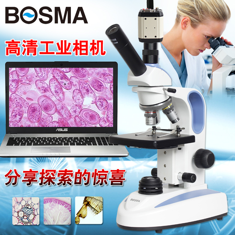 BOMSA/博冠生物显微镜 学生教学 科研 水产螨虫检测 可配工业相机