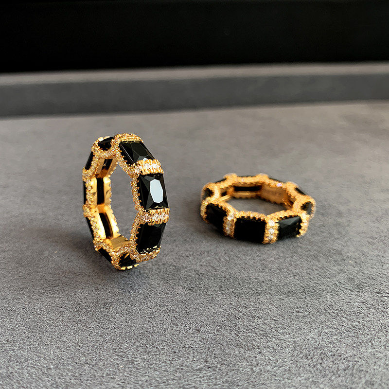黑色玛瑙戒指女轻奢小众设计师中古高级感复古夸张个性宝石食指环