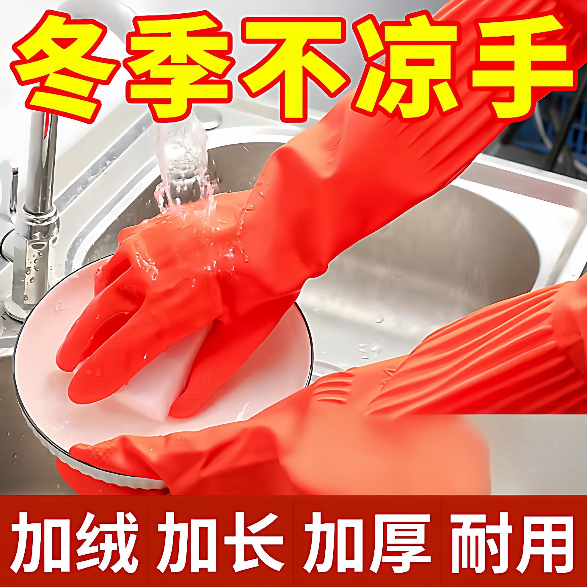 洗碗手套加绒加厚保暖款男女厨房耐用橡胶乳胶皮洗衣加长手套家务