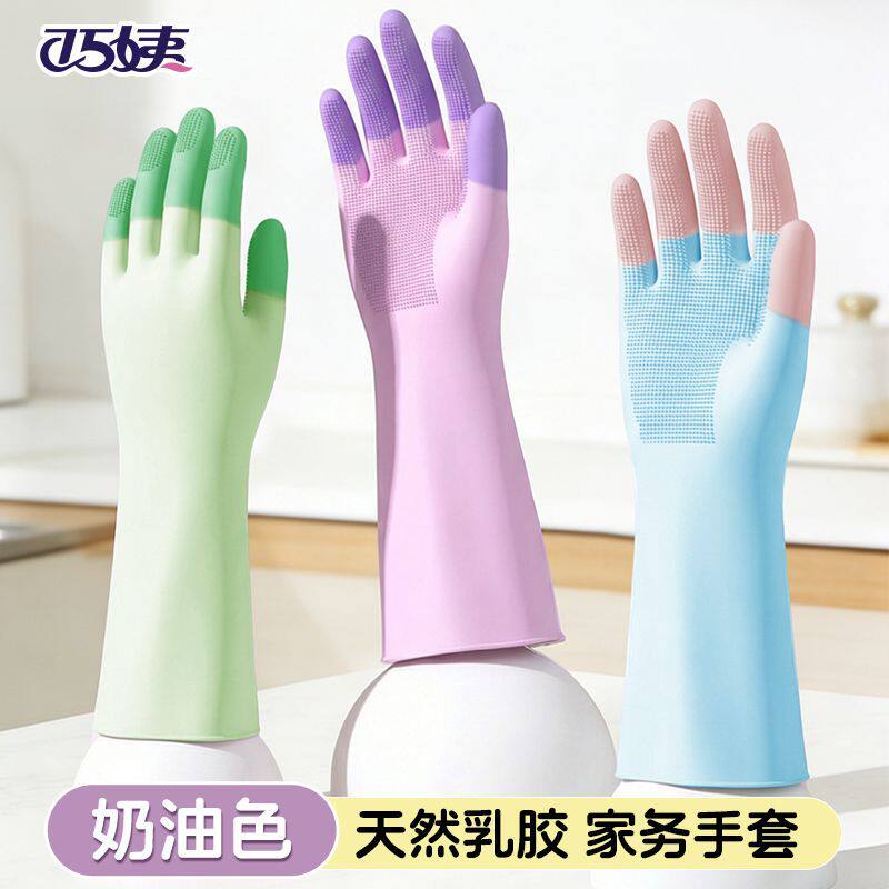 家务清洁洗碗手套女乳胶家用厨房防水洗衣服橡胶胶皮刷碗贴手耐用