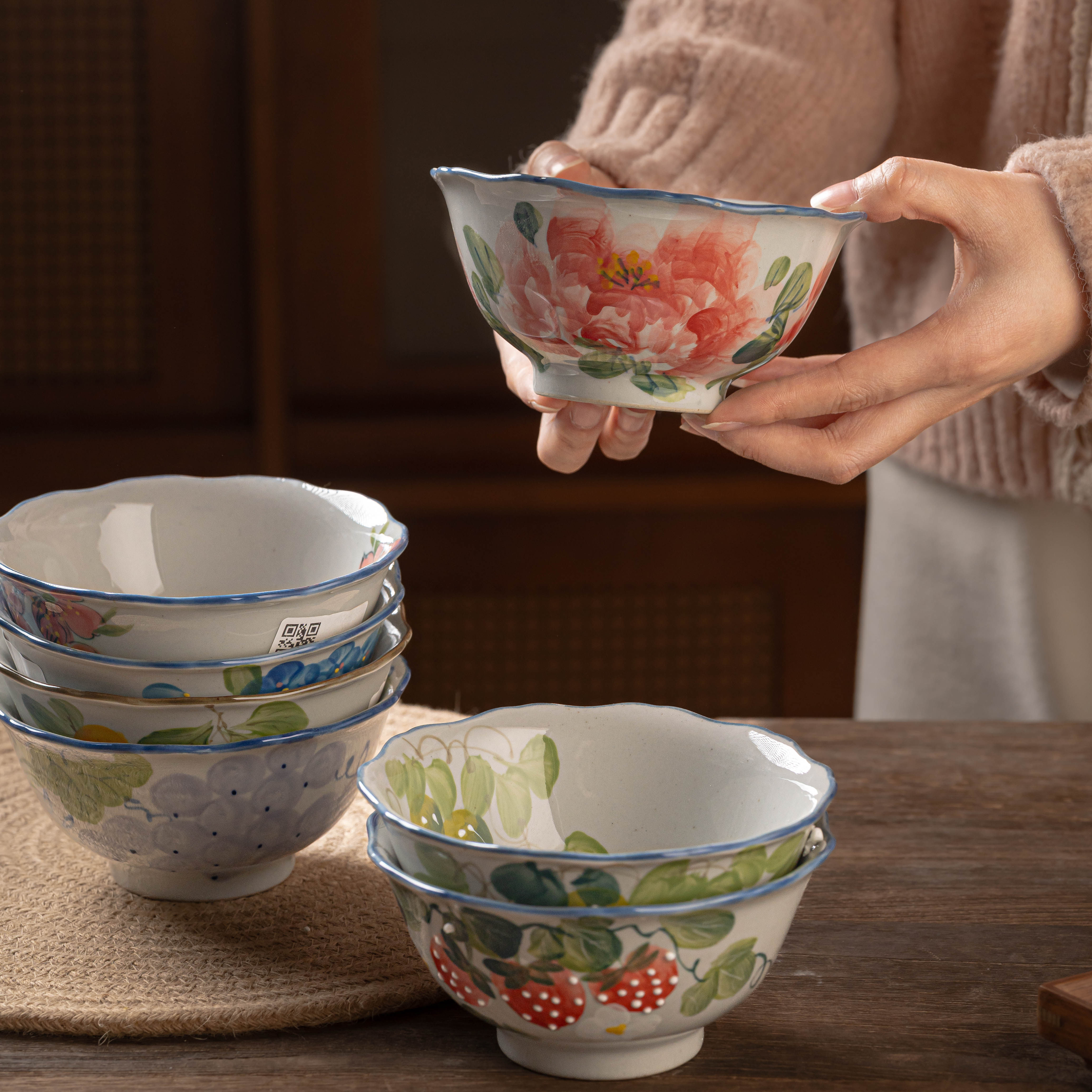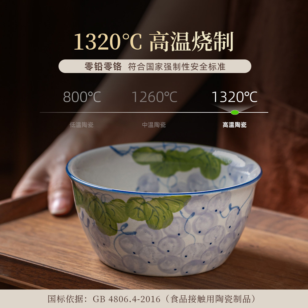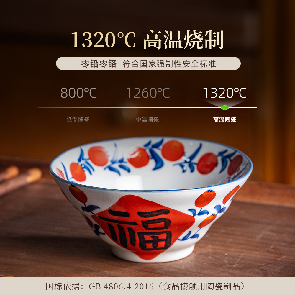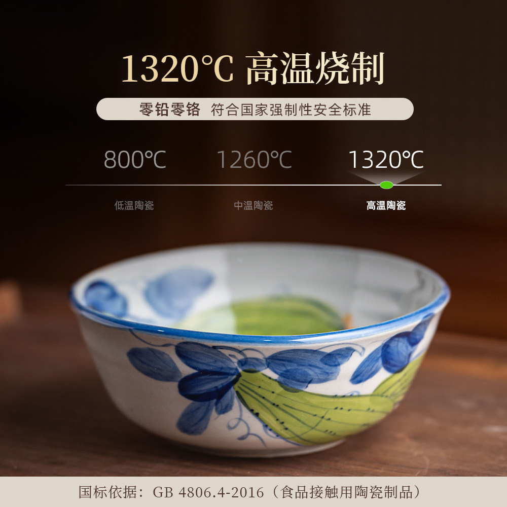 景德镇陶瓷手绘碗老陶泥仿古创意米饭碗沙拉碗釉下彩5.5寸猪鼻碗
