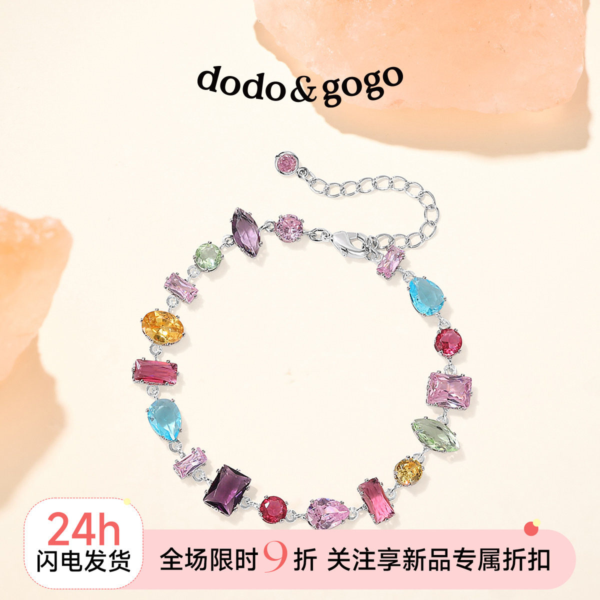 DODOGOGO彩色糖果锆石方糖手链高级感森系串珠手饰2026年爆款配饰