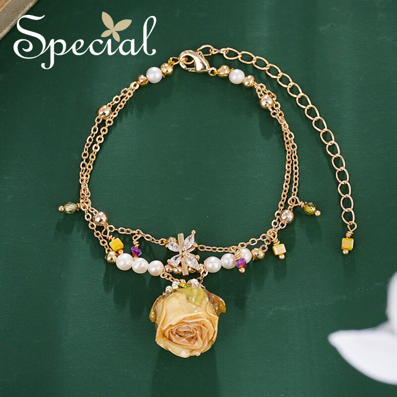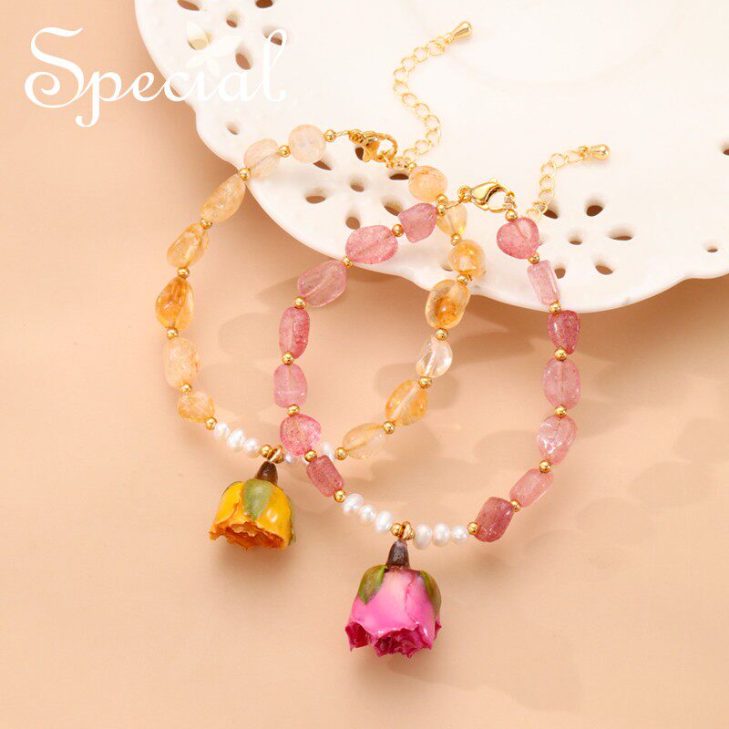 SPECIAL欧美轻奢珍珠粉水晶黄水晶森系花朵手链手饰女2026年新款