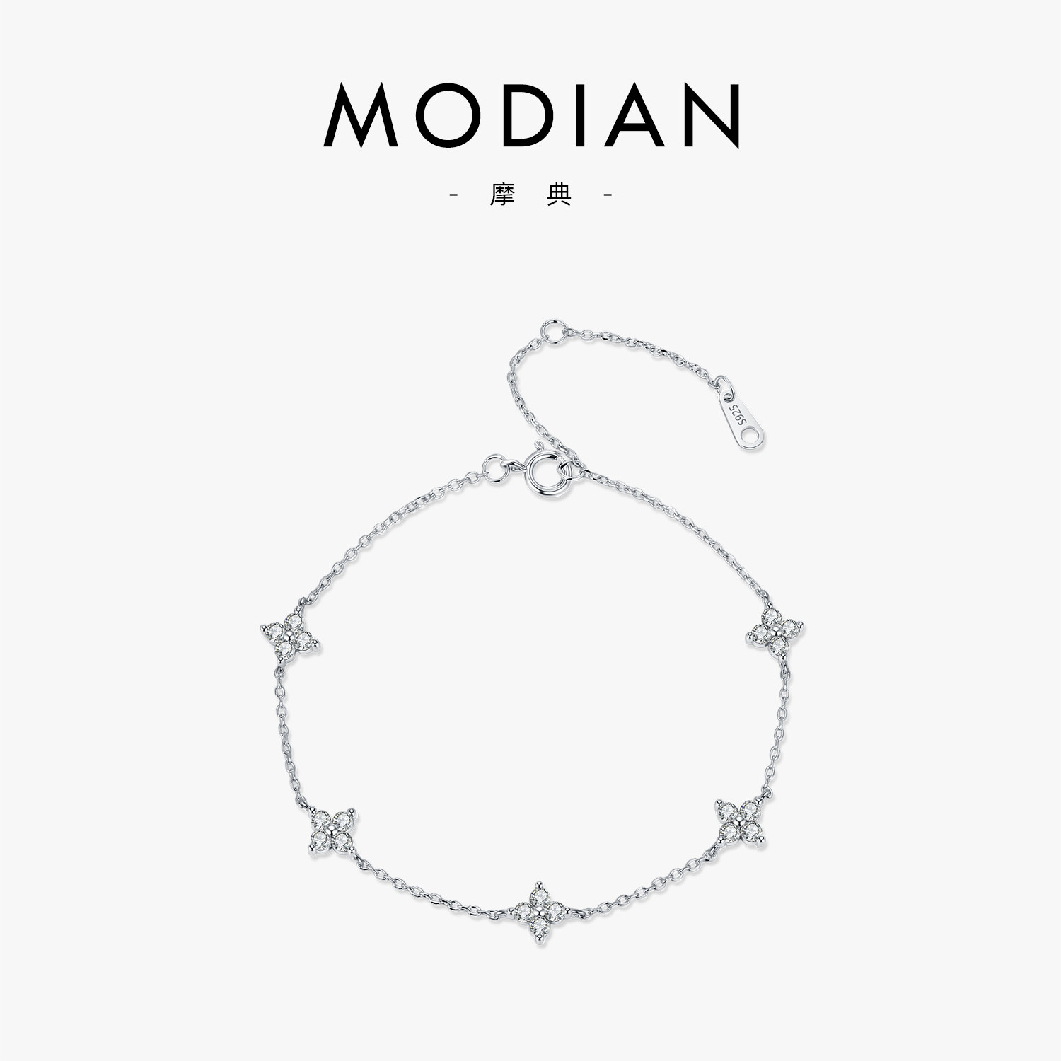 MODIAN摩典S925纯银森系四叶草闪钻花朵手链女小众设计百搭手饰