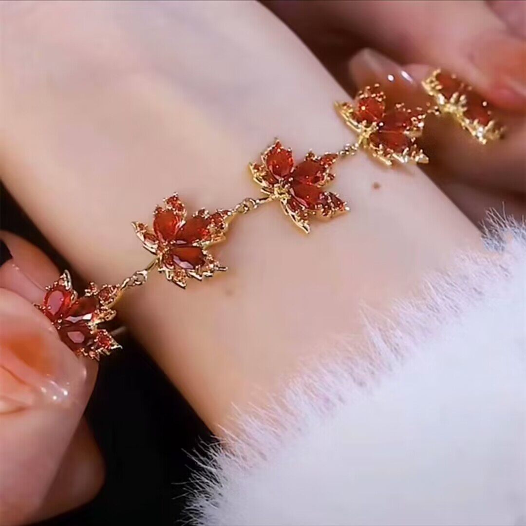 锆石红枫叶子手链抖音同款轻奢气质百搭创意设计感森系手环手饰女