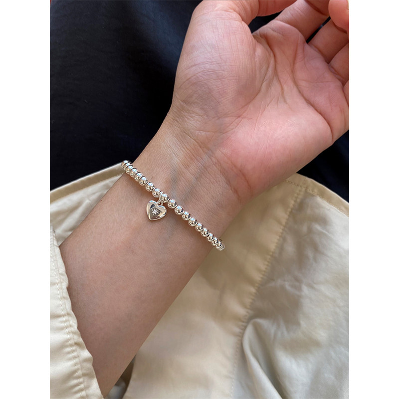 「浪漫星芒」susu足银999圆珠爱心水滴锆石手链精致甜美森系闺蜜