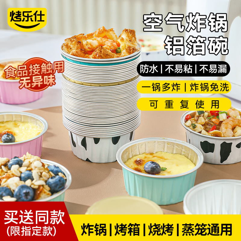 空气炸锅锡纸碗可重复使用铝箔家用烤箱布丁蛋糕烘焙模具锡纸盒杯