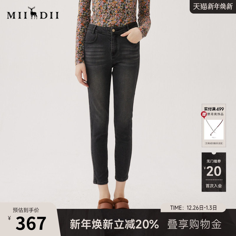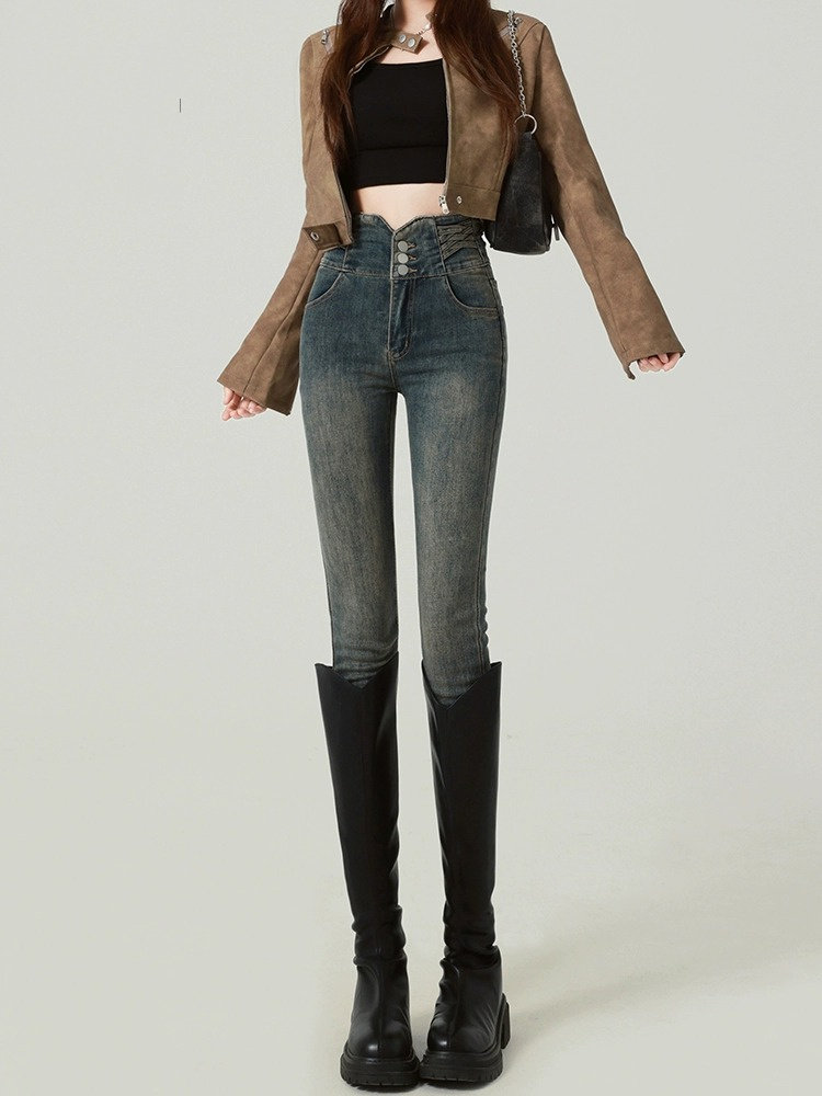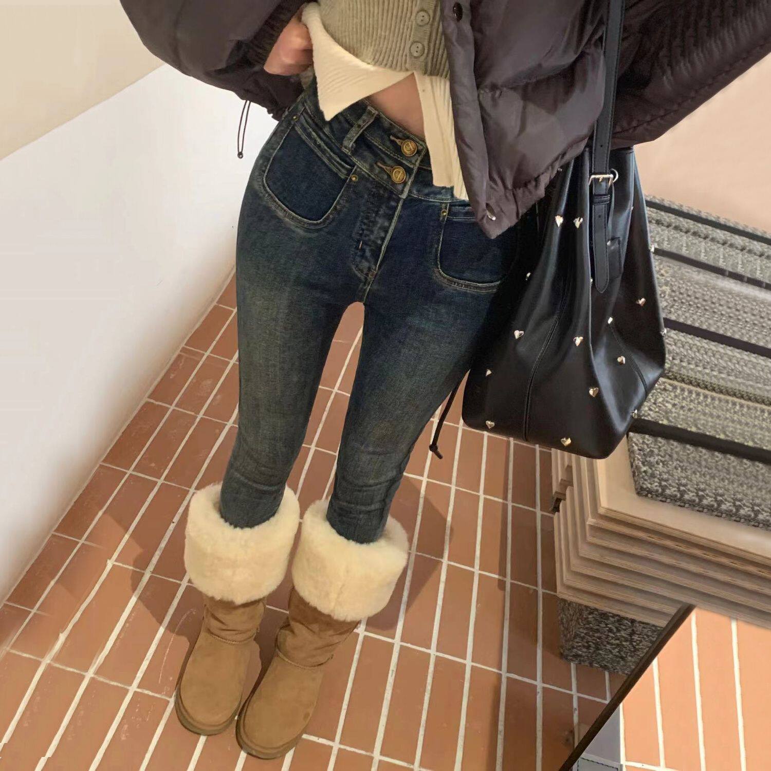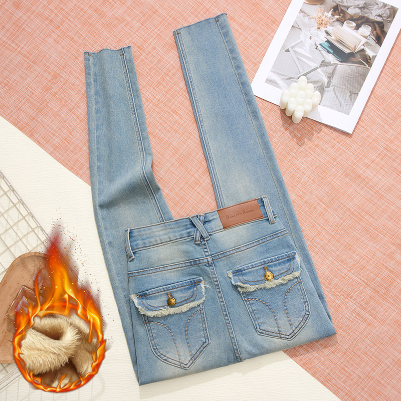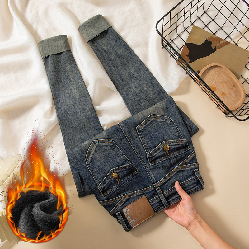 - 牛仔裤加绒女冬小脚
