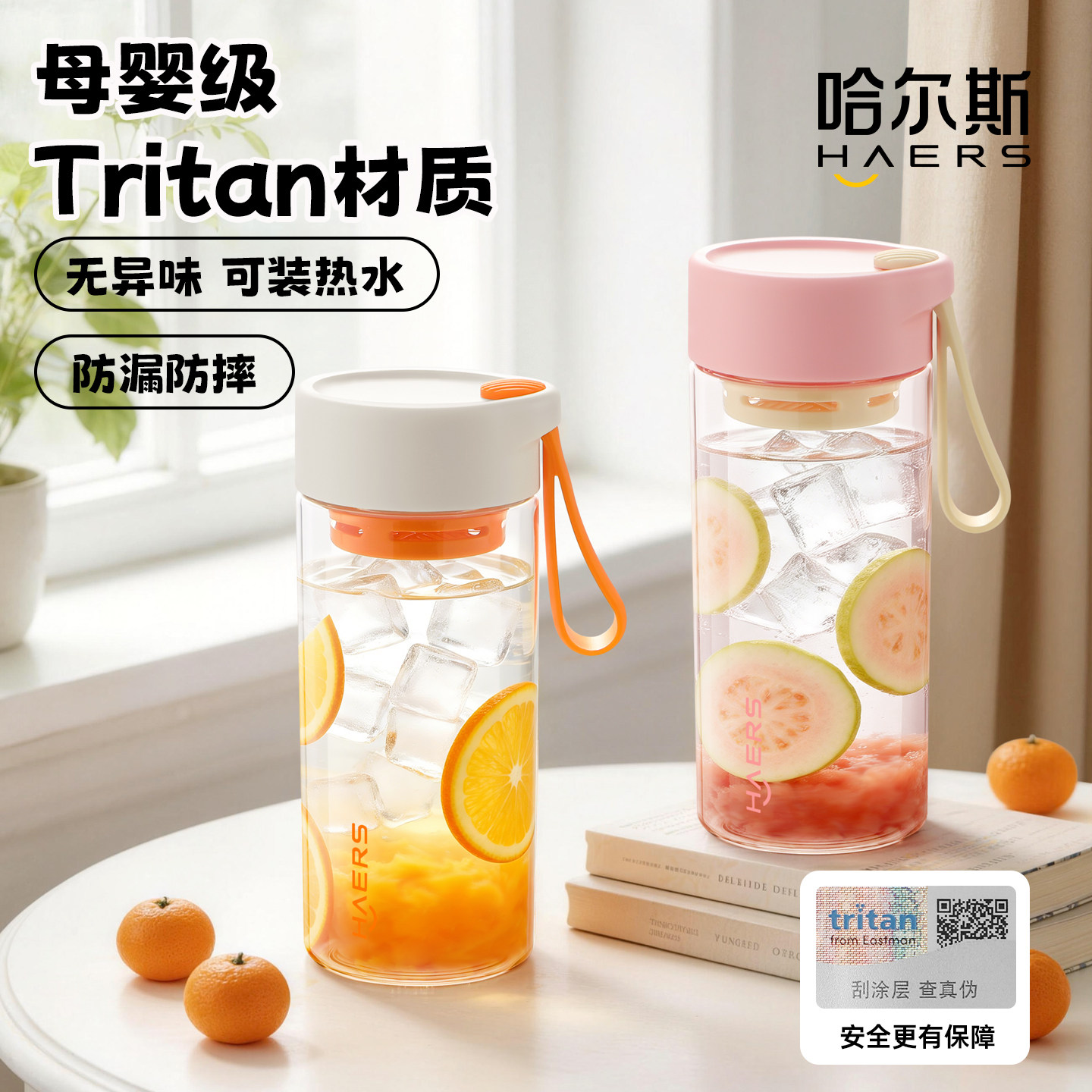 哈尔斯夏日便携运动塑料tritan耐高温食品级装开水杯学生上学专用