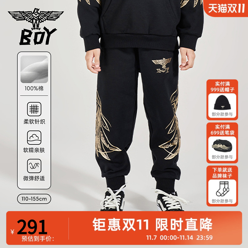【加绒】BOY童装25冬新款卫裤儿童时尚logo印花潮流运动裤男女童