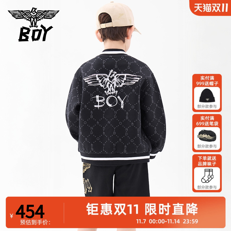 BOY童装 春秋儿童潮流满印提花百搭圆领套头卫衣外套男女童中大童