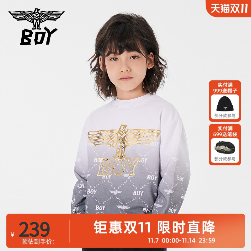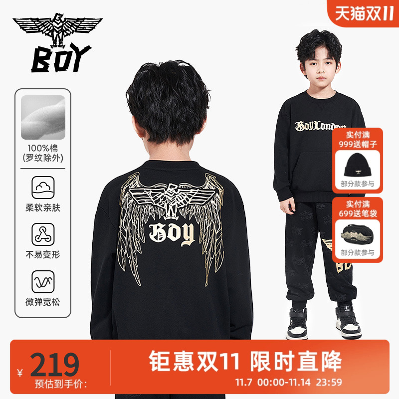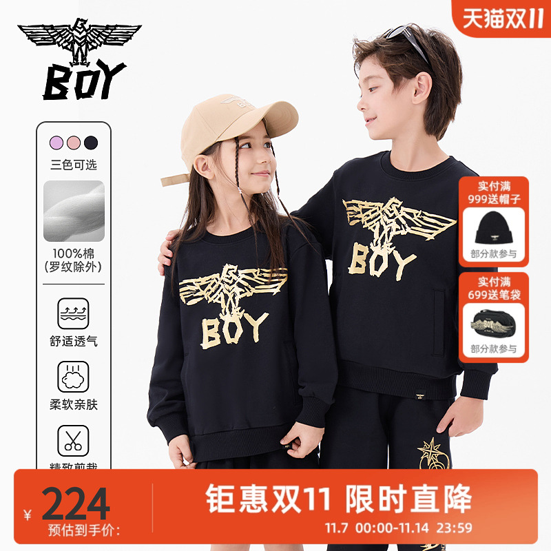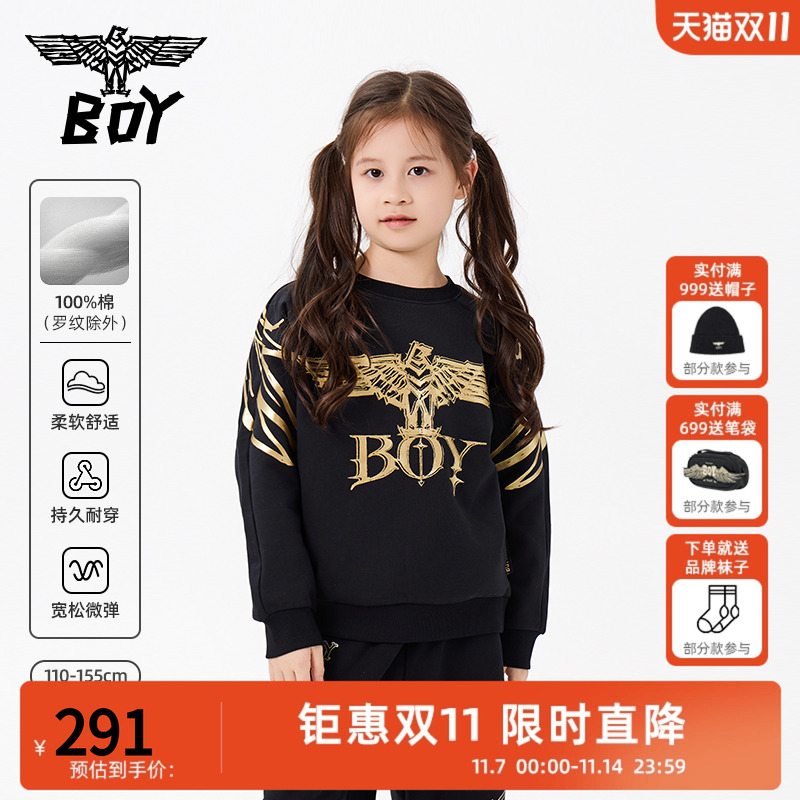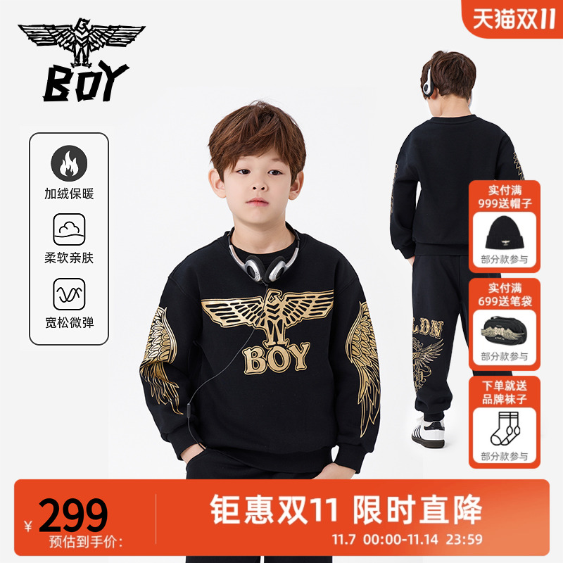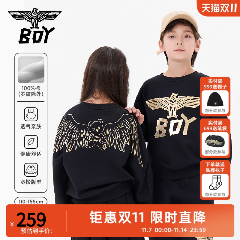 BOY童装 秋冬圆领套头卫衣时尚潮牌大翅膀老鹰烫金印花上衣男女童