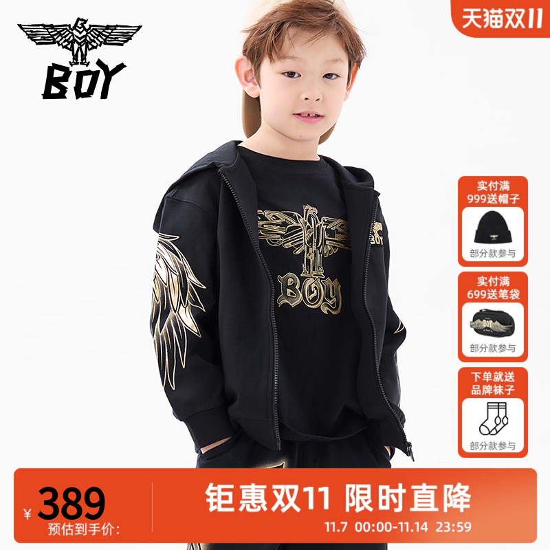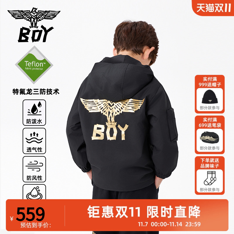 BOY童装儿童潮防风外套经典鹰标帅气连帽户外夹克男童女童中大童